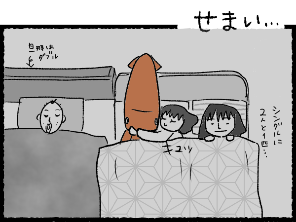 我が家のベッドを占領するデカぬいぐるみ2匹。今日もひしめき合って寝ています。